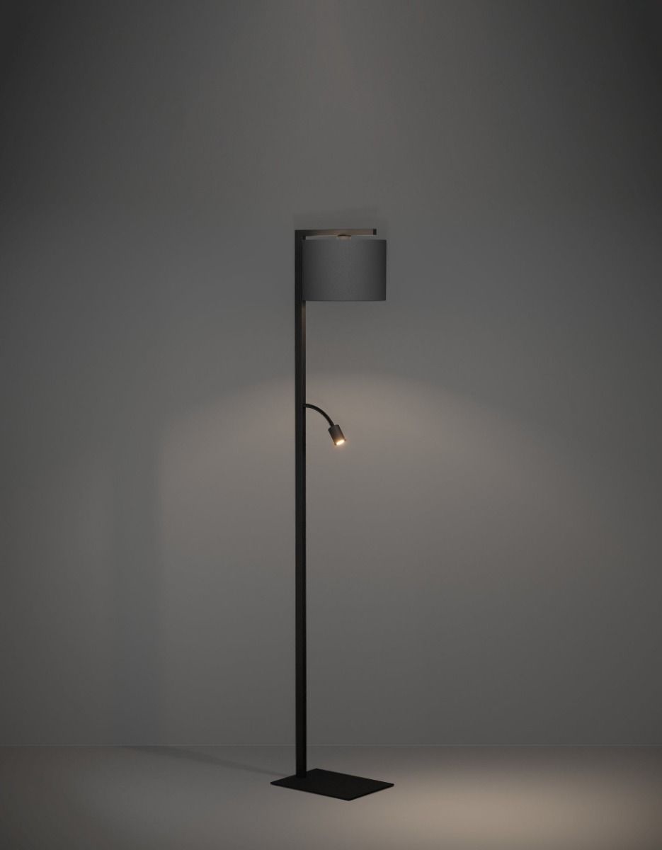 Φωτιστικό Δαπέδου Μαύρο 34,5x26,5xH180cm 1xE27 με Σποτ Διαβάσματος Eglo Foligno 390068