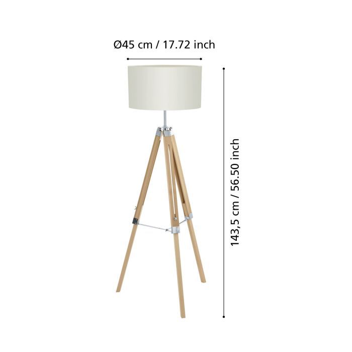 Φωτιστικό Δαπέδου Τρίποδο Ø975xØ450xH1060-1430mm Μονόφωτο 1xE27 Μέταλλο-Ξύλο-Ύφασμα Μπεζ Eglo Lantada 94324