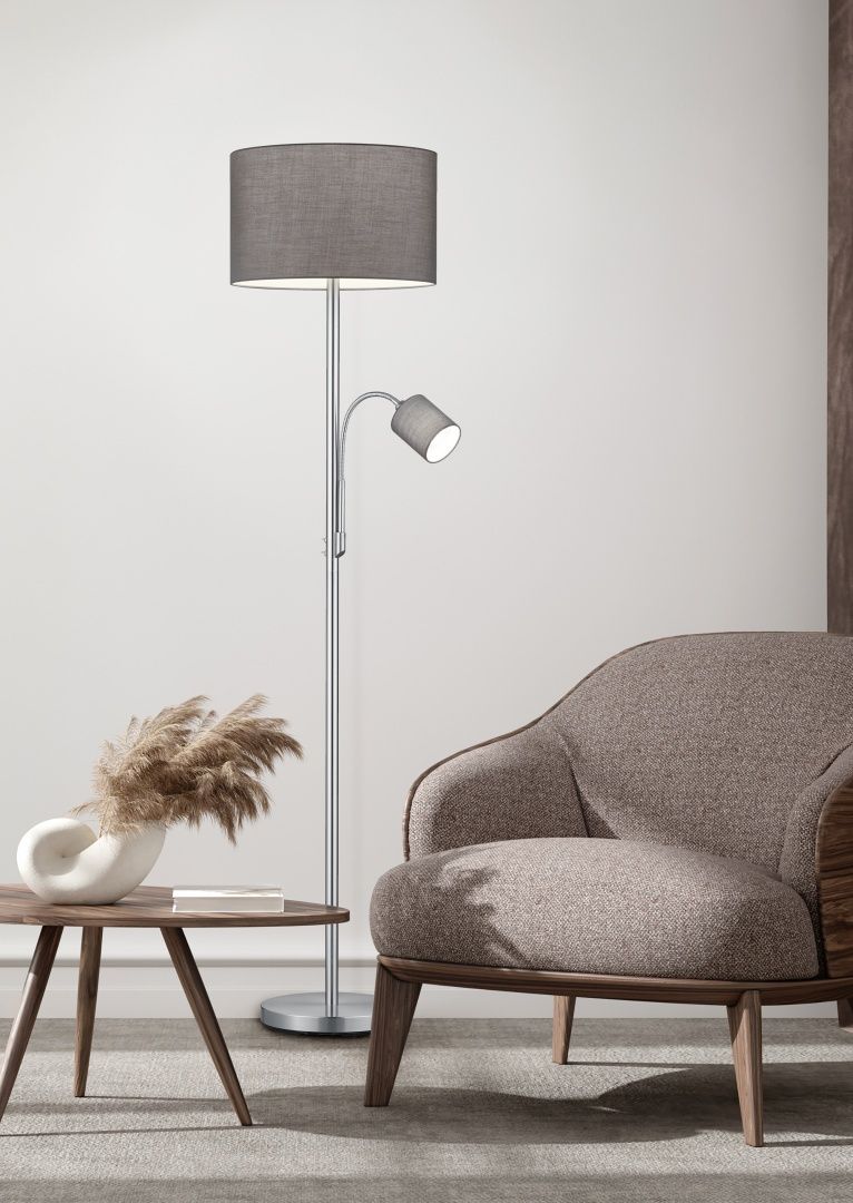 Φωτιστικό Δαπέδου 40xH170cm με Βοηθητικό Διαβάσματος Νίκελ Ματ Βραχίονας Γκρι Υφασμάτινο Καπέλο Trio Lighting Hotel 403900211