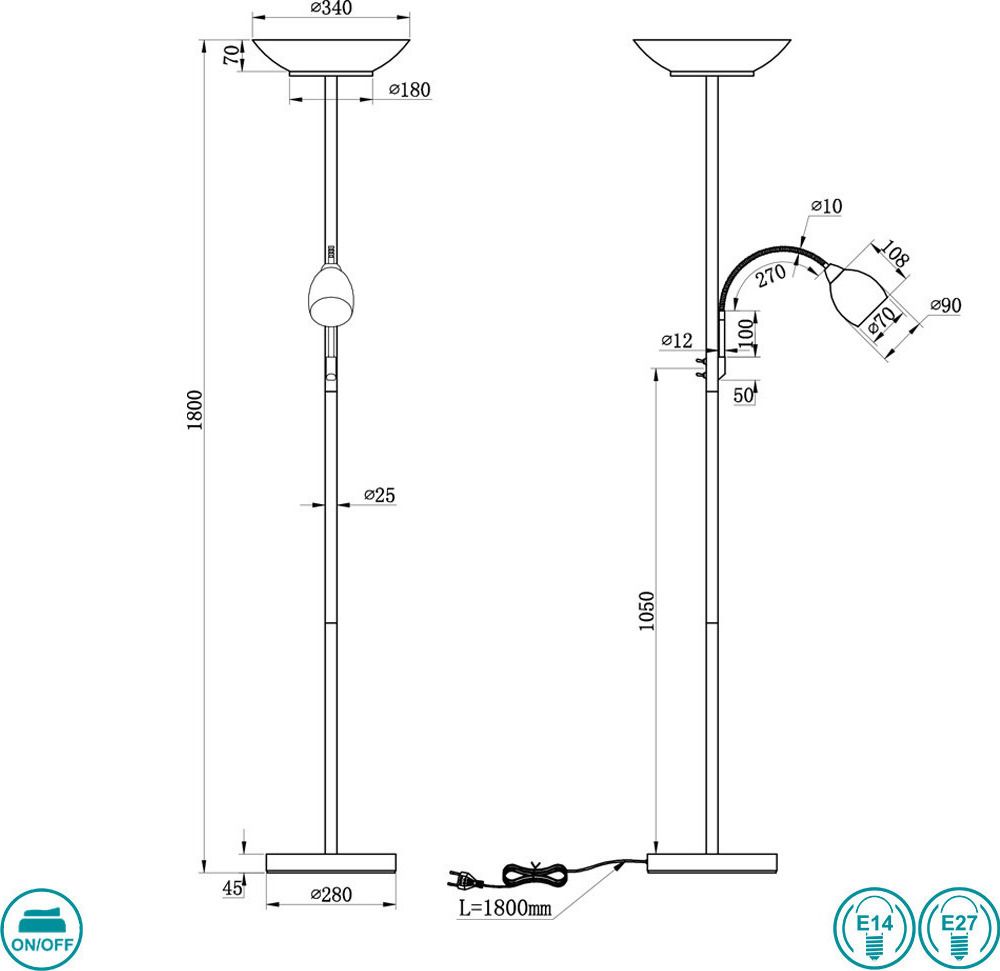 Φωτιστικό Επιδαπέδιο Ø34*Υ180 εκ. Δίφωτο 2*Ε27 Μέταλλο Χρώμα Σκουριάς Trio Lighting RL Gerry R40063124