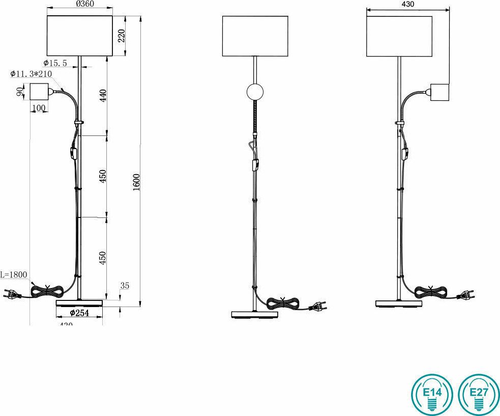 Ντουί: Ε27 -Ε14 Λαμπτήρες: 1 max 42watt 1 max 10watt