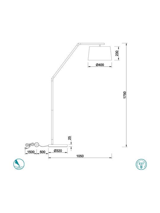 Φωτιστικό Επιδαπέδιο Υ175xØ40εκ. 1xE27 Μέταλλο Μαύρο Ματ-Υφασμάτινο Αμπαζούρ Trio Lighting Tracy 462100132