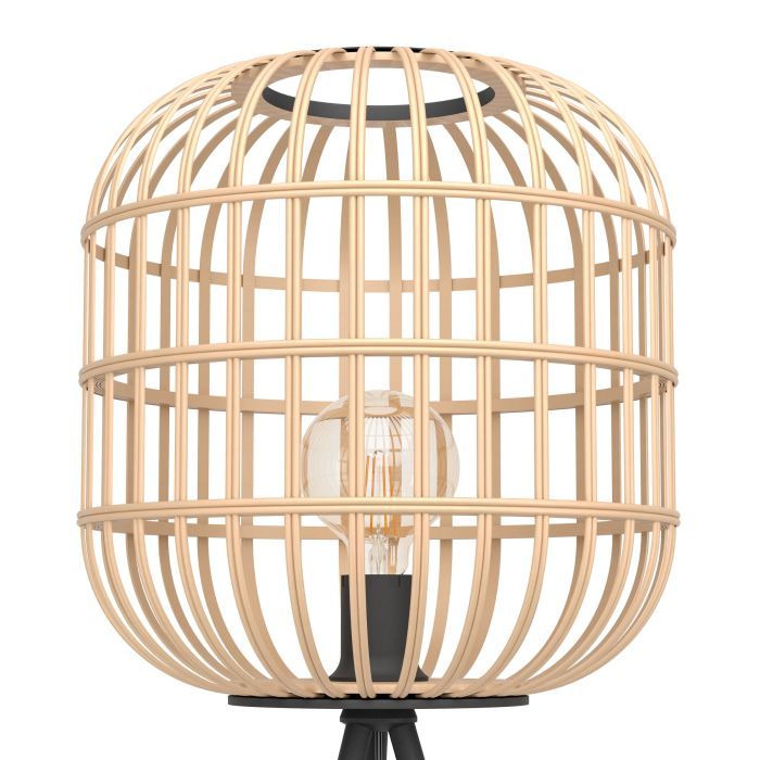 Φωτιστικό Επιδαπέζιο Τρίποδο Ø820xH1390mm Αμπαζούρ Ø3500mm 1xE27 Ξύλο-Μαύρο Eglo Bordesley 43219