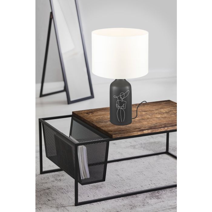 Μοντέρνο πορτατίφ της Eglo με μαύρο καπέλο και βάση σε λευκό χρώμα, από κεραμικό υλικό.