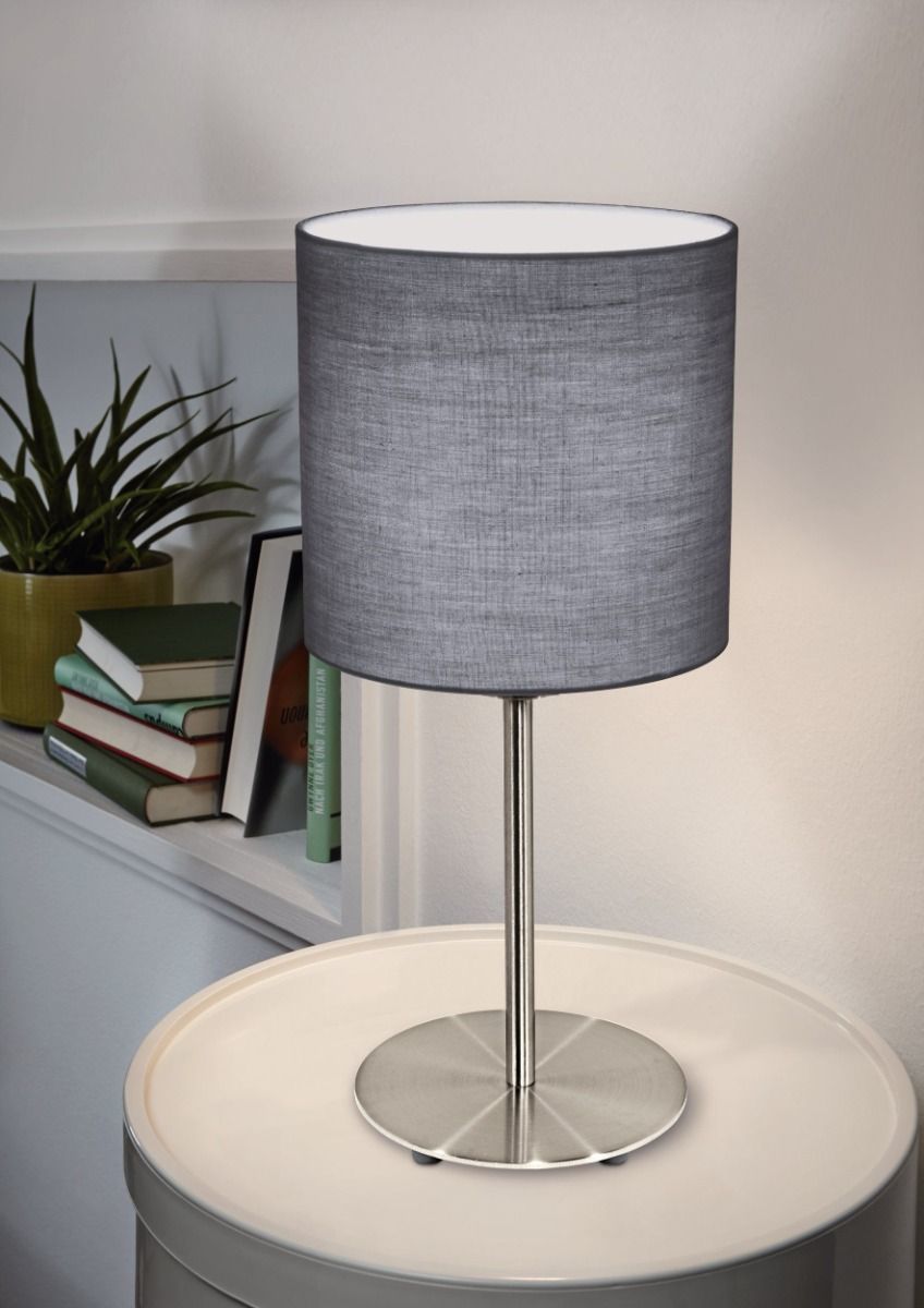 Φωτιστικό Επιτραπέζιο 1xE27 Ø180xH400mm Νίκελ Ματ- Ύφασμα Γκρι Eglο Pasteri 31596