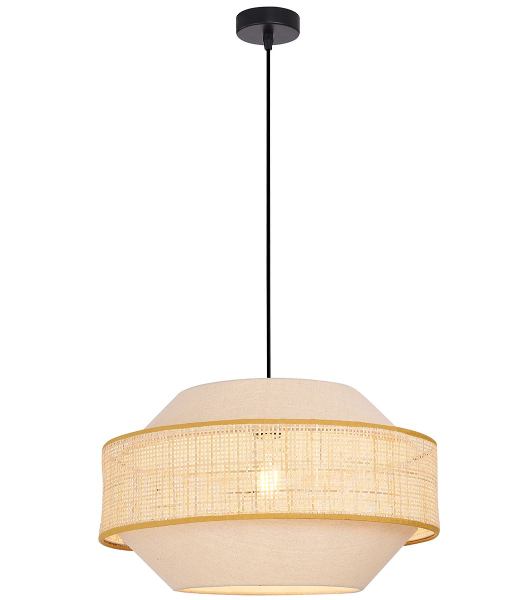 Φωτιστικό Κρεμαστό Ø450xY280xY1500mm 1xE27 Μαύρο- Ύφασμα-Ράταν Φυσικό Viokef Erica 4274600