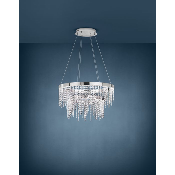 Φωτιστικό Κρεμαστό Ø610xH1500 mm Led 45w 6700lm Dimmable Χρωμέ -Διάφανα Κρύσταλλα Eglo Antelao 39281