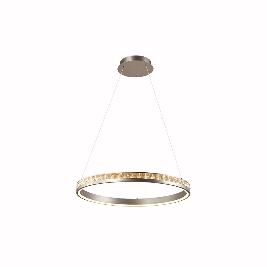 Πολύφωτο κρεμαστό φωτιστικό μονός κύκλος LED κατασκευασμένο από αλουμίνιο σε χρώμα Dark Nickel και κρύσταλλο Κ9.