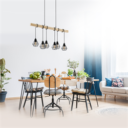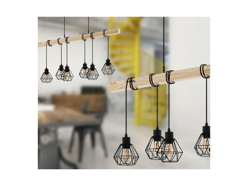 Φωτιστικό Κρεμαστό Εξάφωτο Ράγα Ξύλινη 100 εκ. Μαύρο Πλέγμα Eglo Townshend 5 43133.