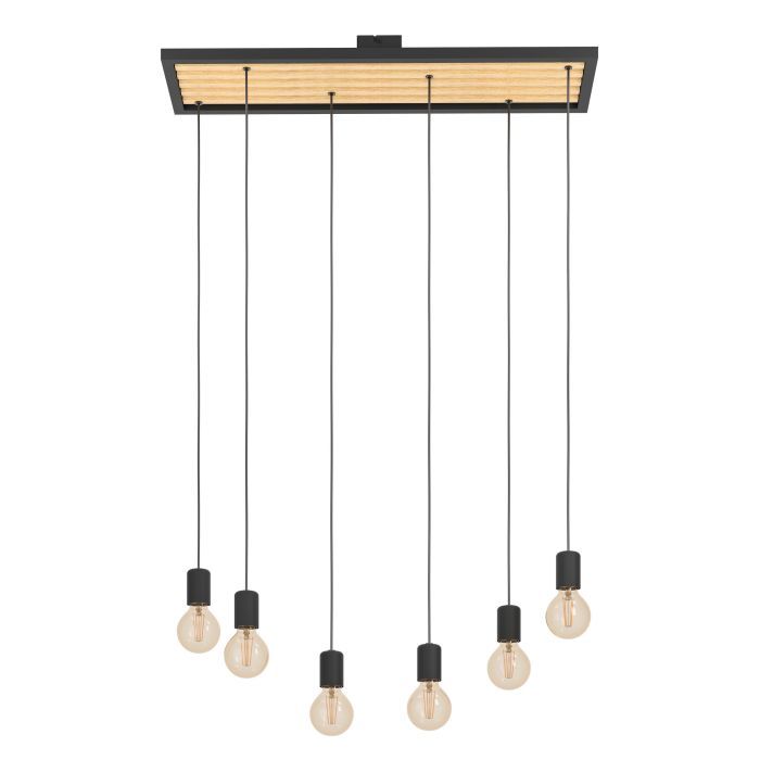 Φωτιστικό Κρεμαστό Εξάφωτο L780xB250xH1100mm 6xE27 Μέταλλο Μαύρο-Ξύλο Φυσικό Eglo Consett 43725