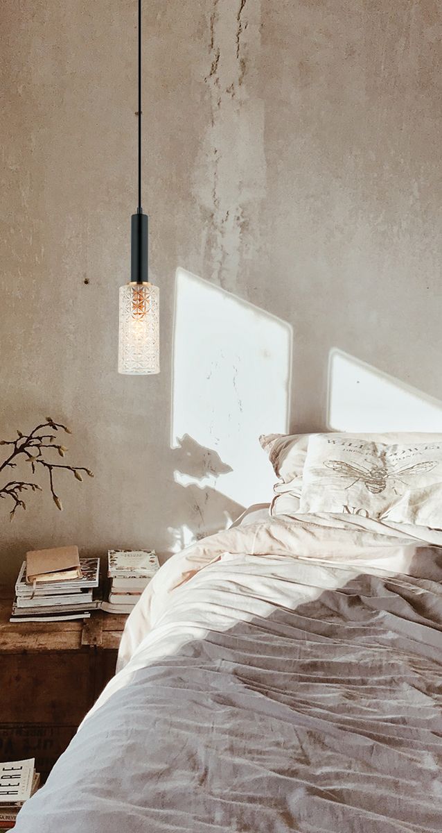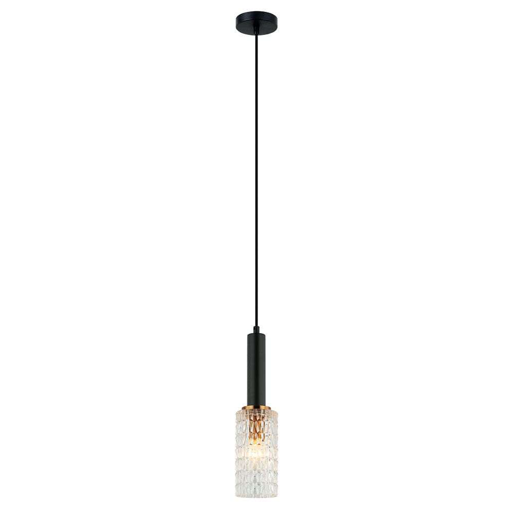 Φωτιστικό Κρεμαστό Μονόφωτο Ø100x360xH1910mm 1xE14 Ανάγλυφο Γυαλί -Ανάρτηση Μαύρη με Χρυσό Viokef Lira 4246200
