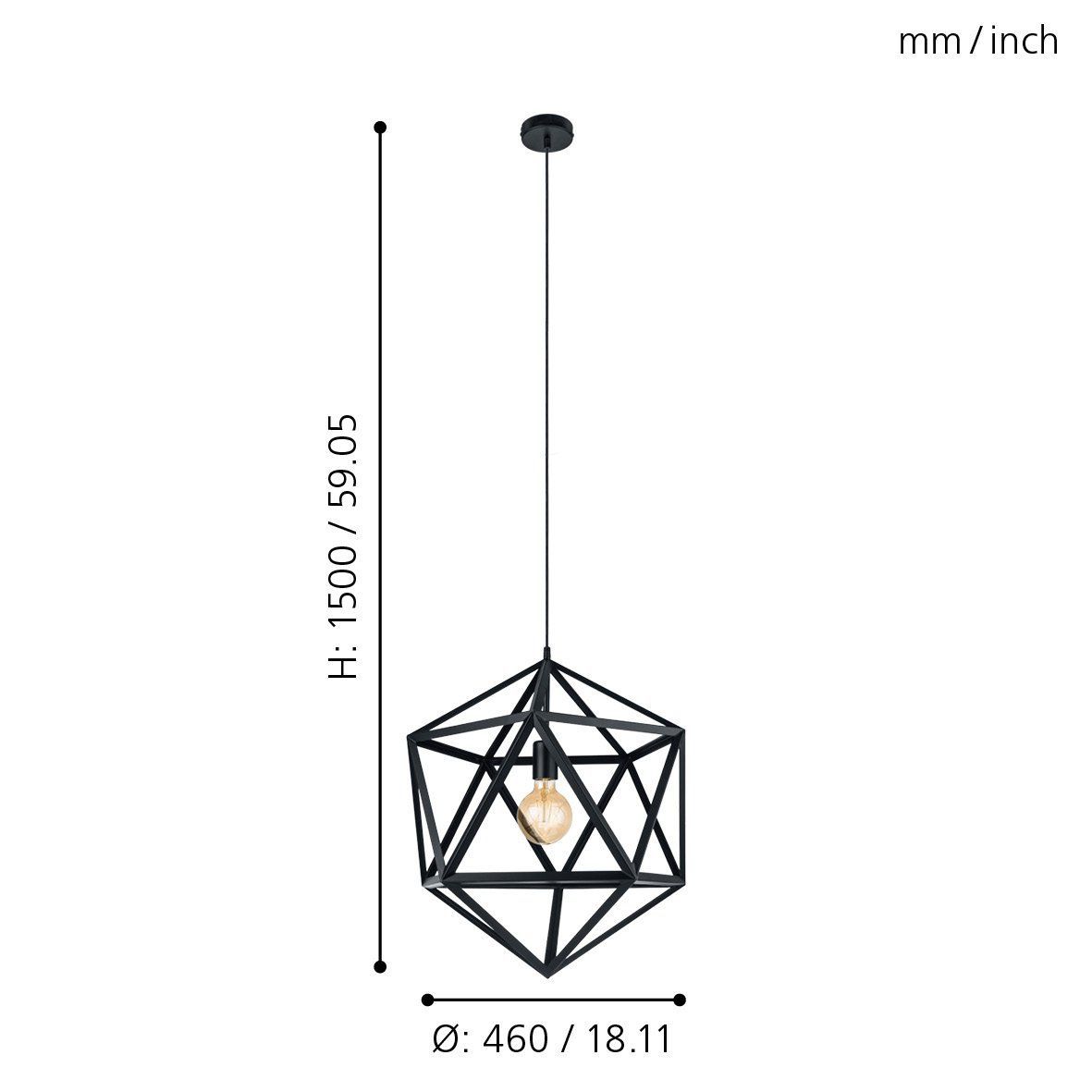 Φωτιστικό Κρεμαστό Μονόφωτο Ø460xΗ1100mm 1xE27 Μέταλλο Μαύρο Eglo Embleton 49762