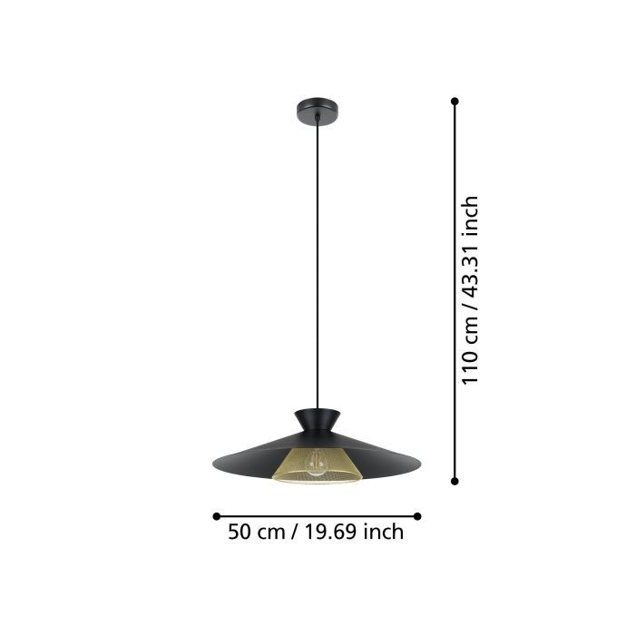 Φωτιστικό Κρεμαστό Μονόφωτο 1xE27 Ø500xH1100mm Μέταλλο-Μαύρο-Ορείχαλκος Eglo Grizedale 43885