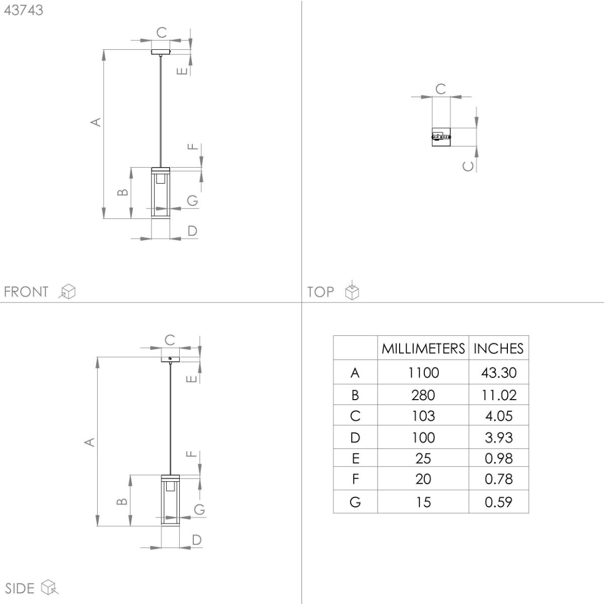 Φωτιστικό Κρεμαστό Μονόφωτο L100xB100xH1100mm 1xE27 Μέταλλο Μαύρο-Ξύλο Φυσικό Eglo Nafferton 43743