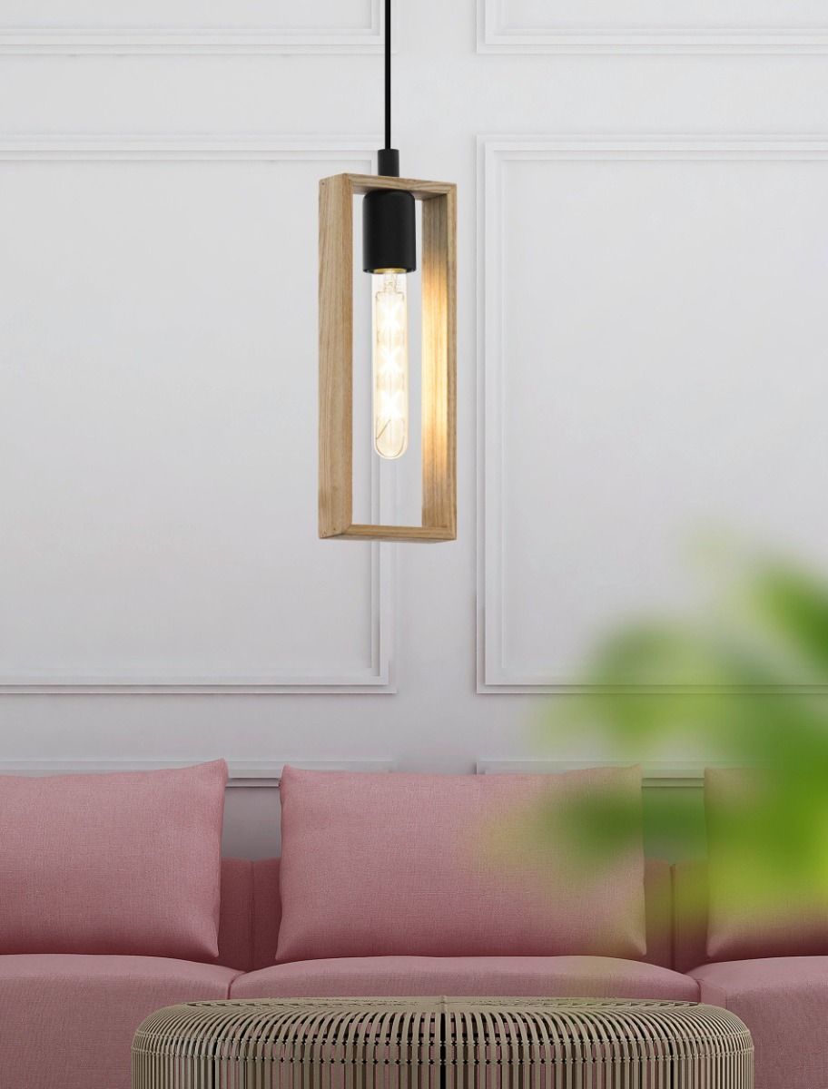 Φωτιστικό Κρεμαστό Μονόφωτο L110xΒ100xH1100mm 1xE27 Μέταλλο Μαύρο-Ξύλο Φυσικό Eglo Littleton 49473