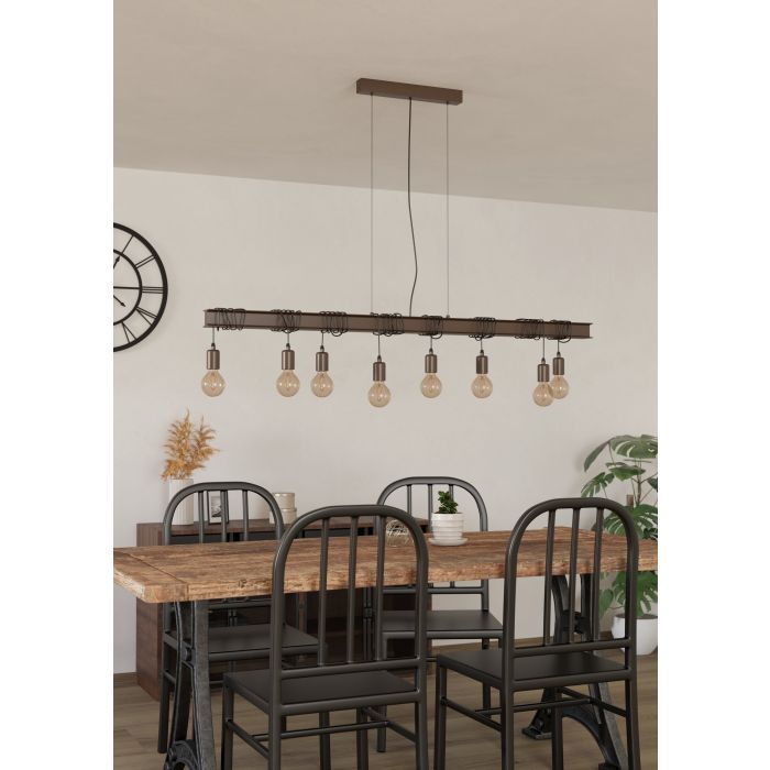 Φωτιστικό Κρεμαστό Οκτάφωτο Ράγα L1500xH1100mm 8xE27 Καφέ Αντικέ Eglo Townshend 4 43524
