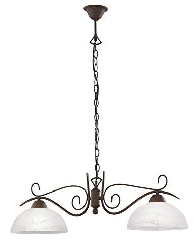 Φωτιστικό Κρεμαστό Ράγα 82 εκ. Δίφωτο Κορμός Καφέ Σκουριάς / Αμπαζούρ Λευκός Αλάβαστρος Trio Country R3432-24.