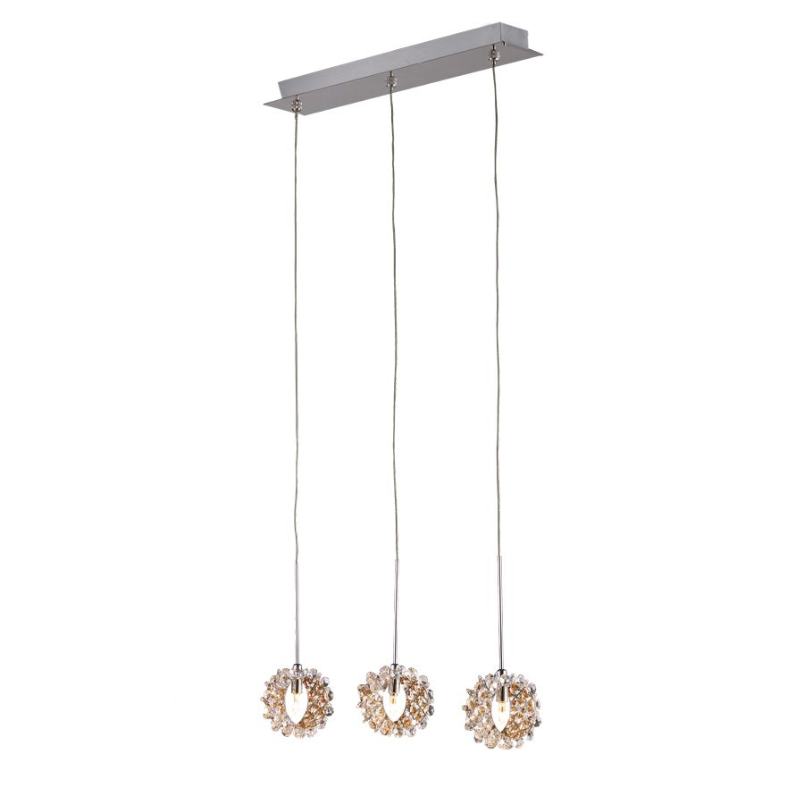 Φωτιστικό Κρεμαστό Ράγα L50cm 3xG4 Χρώμιο-Κρύσταλλα Λευκά & Μελί Sun Light MW-7146B/3PB