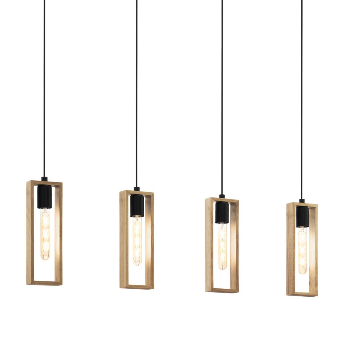 Φωτιστικό Κρεμαστό Τετράφωτο L1160xΒ55xH1100mm 4xE27 Μέταλλο Μαύρο-Ξύλο Φυσικό Eglo Littleton 49475