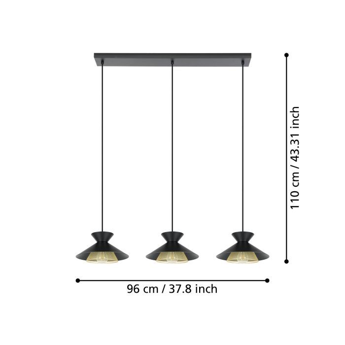 Φωτιστικό Κρεμαστό Τρίφωτο Ράγα 3L960xH1100mm Μέταλλο-Μαύρο-Ορείχαλκος Eglo Grizedale 43886