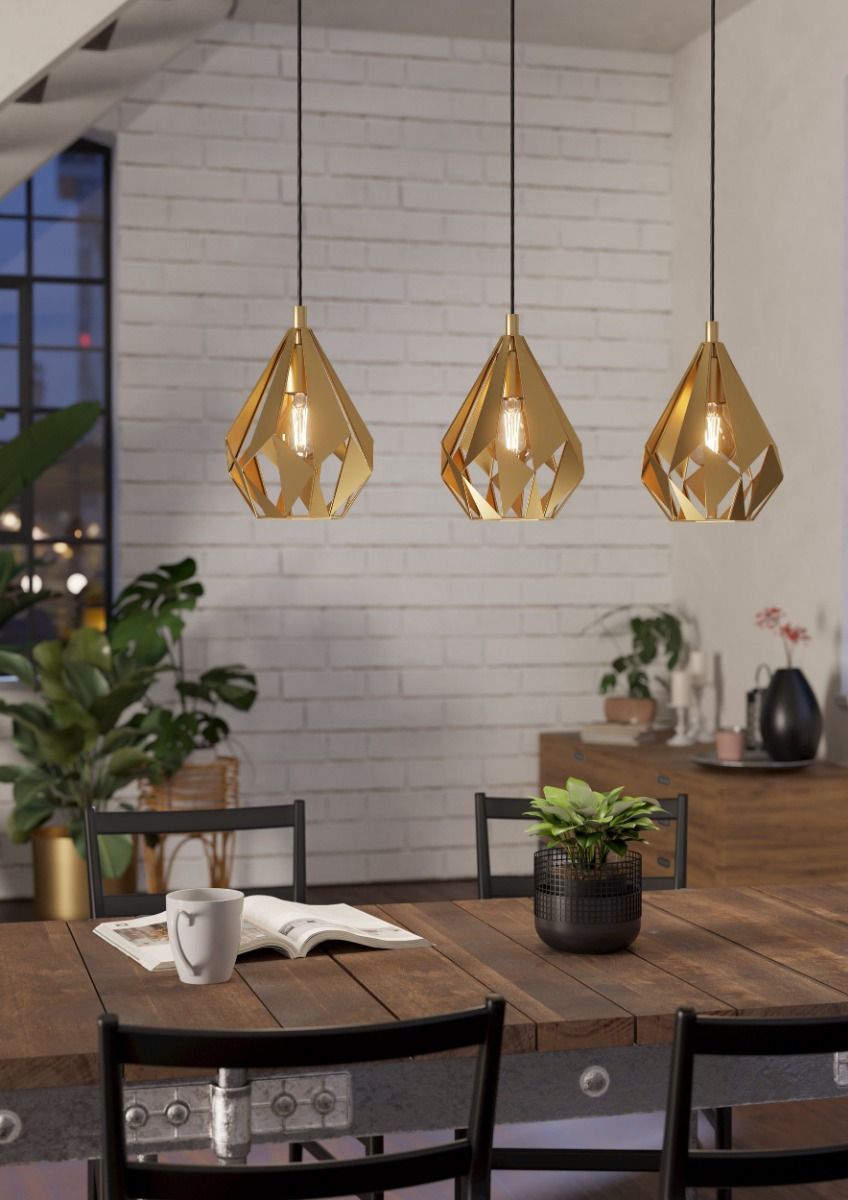 Φωτιστικό Κρεμαστό Τρίφωτο Ράγα 3xE27 L805xH1100mm Μέταλλο Χρώμα Χρυσαφί Eglo Carlton 43909