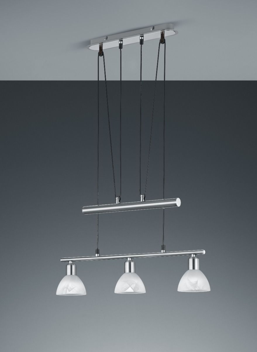 Φωτιστικό Κρεμαστό Τρίφωτο Ράγα L60,5xH 95-160cm Led 3x14,5w 3x400lm 3000K Νίκελ Ματ-Γυαλί Αλάβαστρος Trio Lighting Levisto 371010307