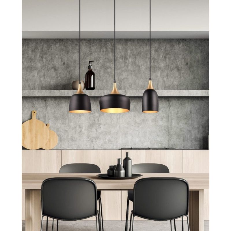 Φωτιστικό Κρεμαστό Τρίφωτο Ράγα L63x20xΗ150cm 3xE14 Μέταλλο Μαύρο-Χρυσό Trio Chiraz 310500332