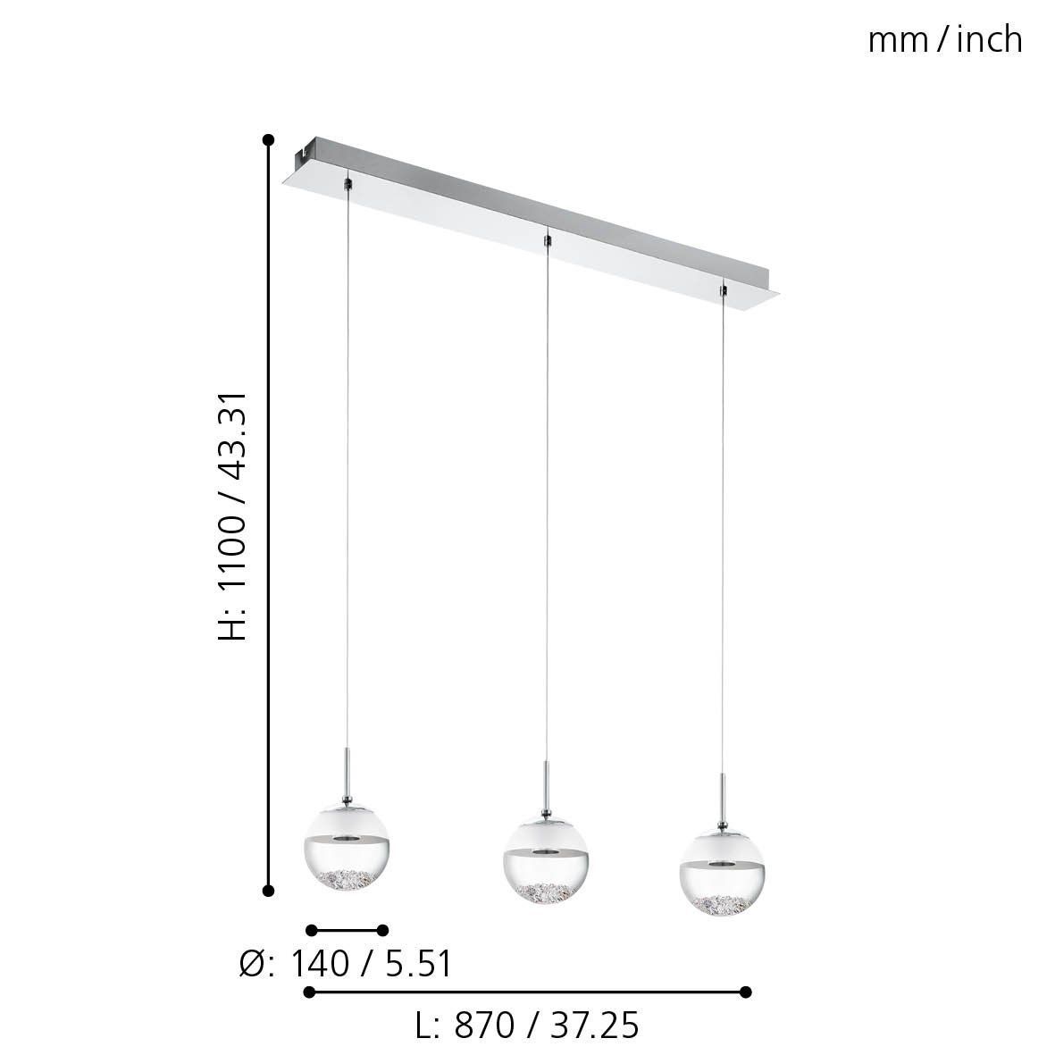 Φωτιστικό Κρεμαστό Τρίφωτο σε Ράγα L870xΒ140xH1100mm Led 3x5w 1440lm 3000Κ Χρωμέ-Κρύσταλλα Διάφανα Eglo Montefio 1 93784