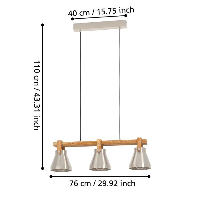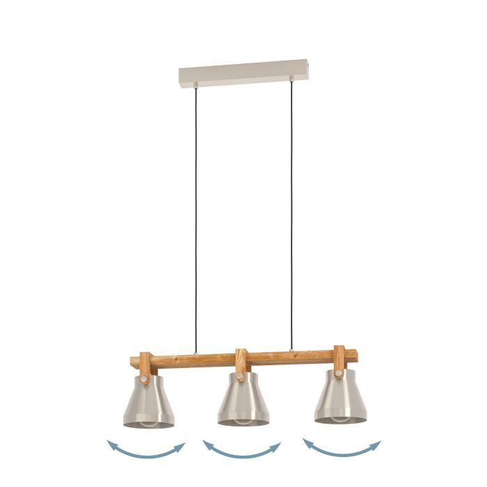 Φωτιστικό Κρεμαστό Τρίφωτο 3xE27 L760xΒ180xH1100mm Χάλυβας-Ξύλο Ρουστίκ Καφέ Eglo Cawton 43952