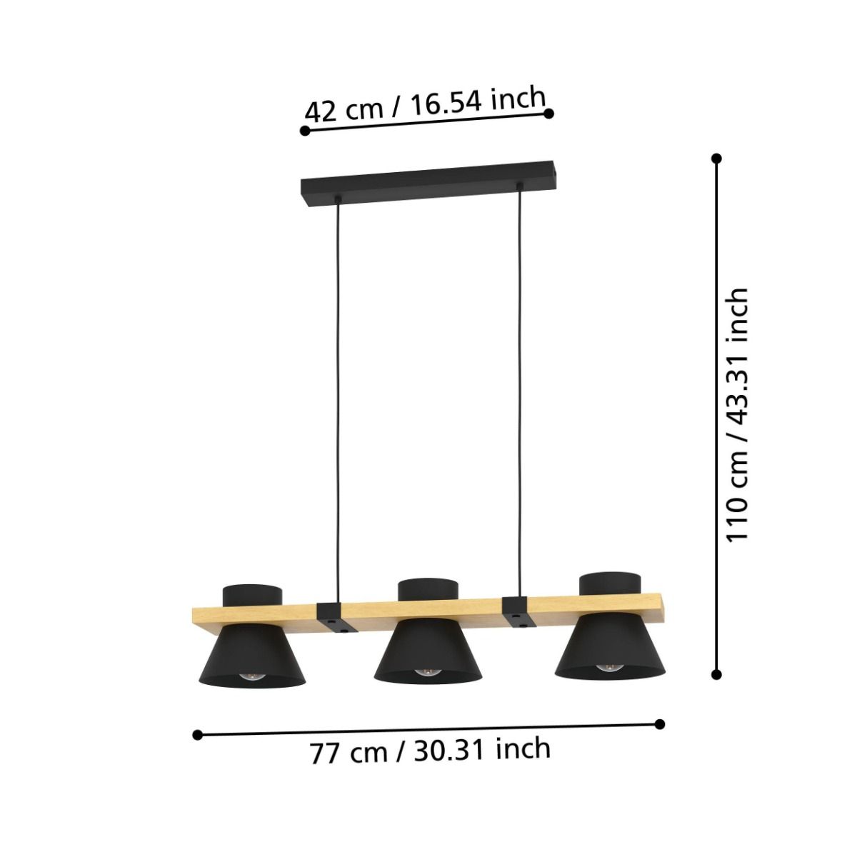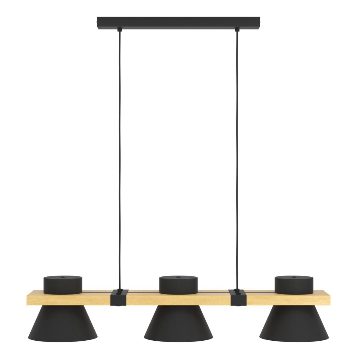 Φωτιστικό Κρεμαστό Τρίφωτο 3xE27 L780xΒ180xH1100mm Μέταλλο Μαύρο-Ξύλο Καφέ Eglo Maccles 43956