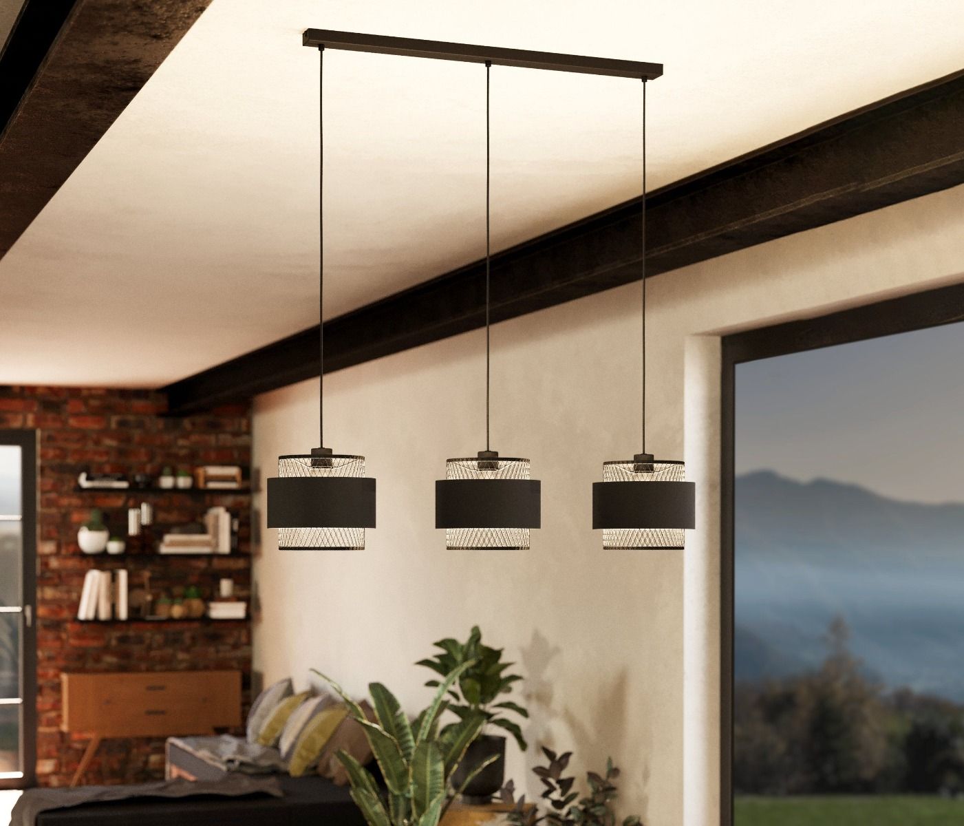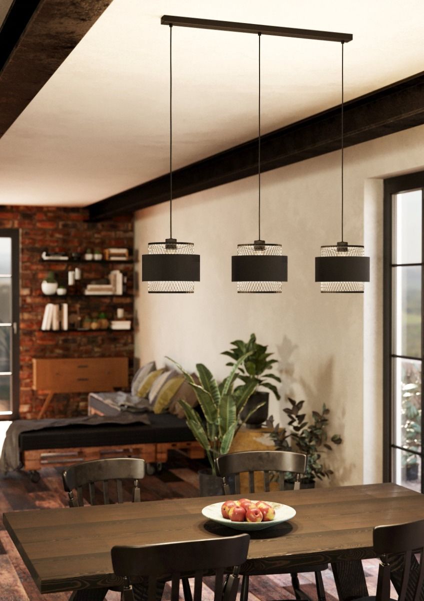 Φωτιστικό Κρεμαστό Τρίφωτο L990xH1100 mm 3xE27 Ύφασμα Μαύρο Ατσάλι Eglo Bazely 43669