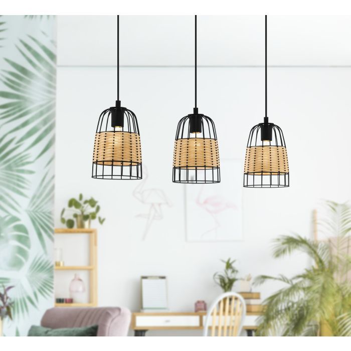 Φωτιστικό Κρεμαστό σε Ράγα L880xH1100mm  3xE27 Μαύρο Ράταν Eglo Anwick 43313