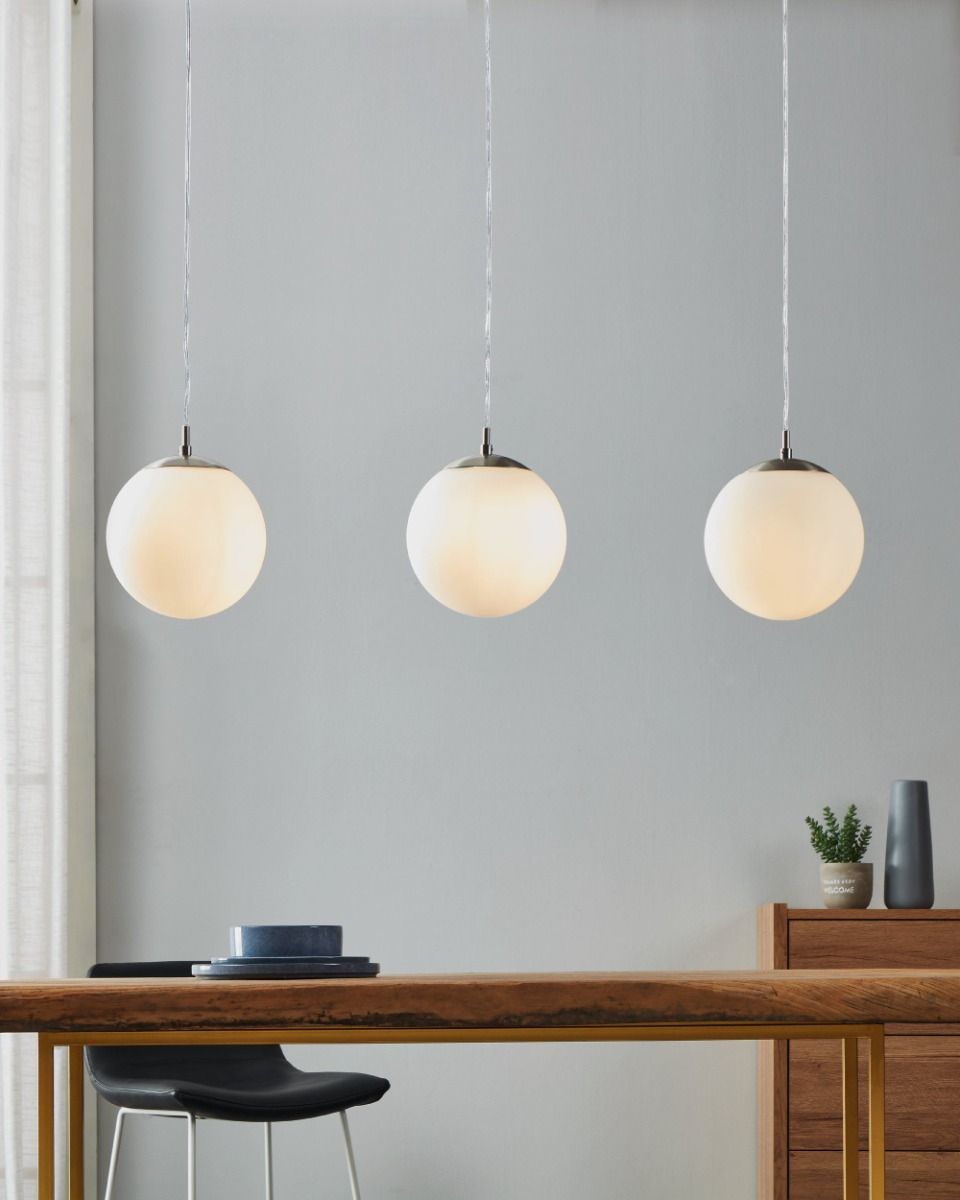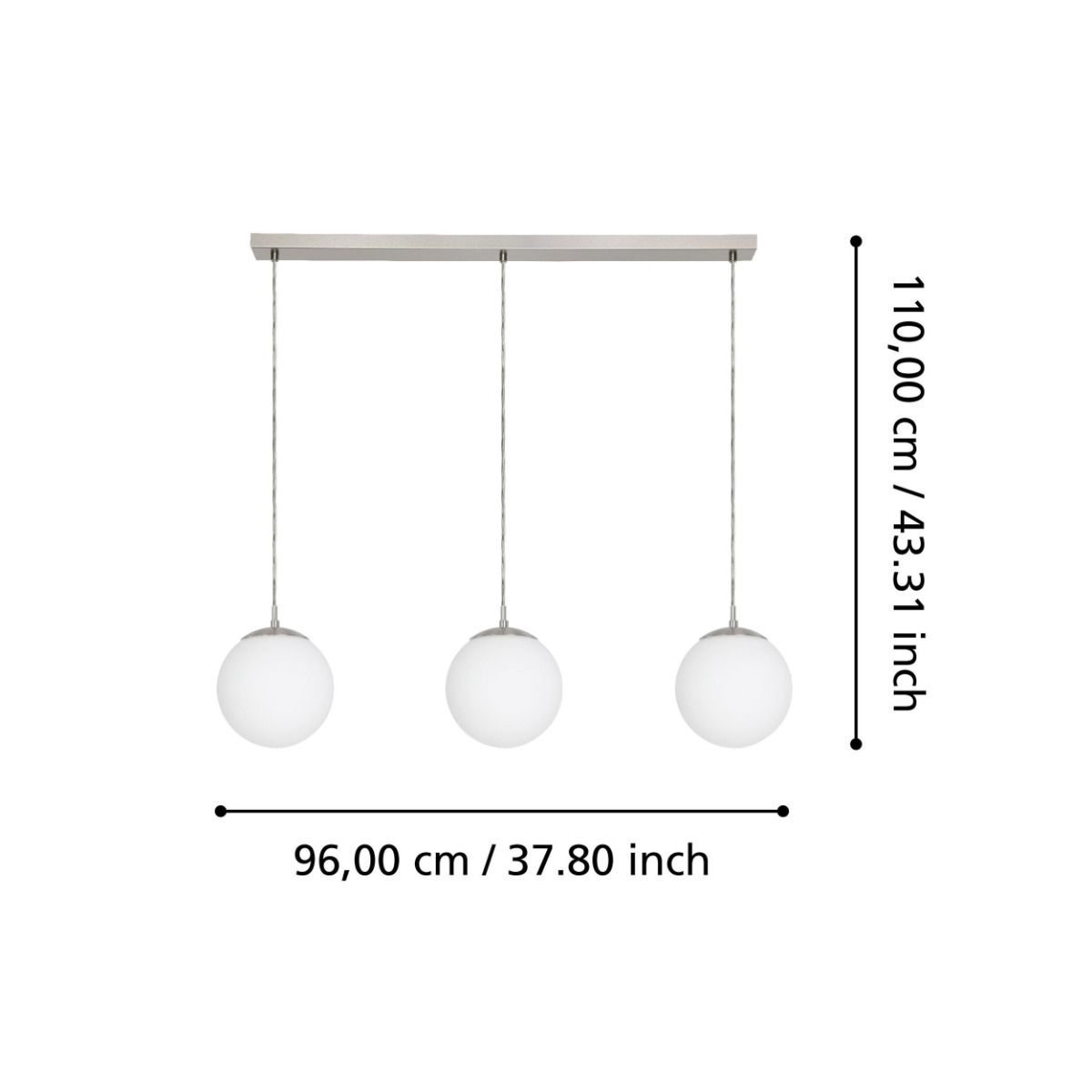 Φωτιστικό Κρεμαστό σε Ράγα L960xB200xH1100mm 3xE27 Μέταλλο Νίκελ Ματ -Γυαλί Οπαλίνα Eglo Rondo 900395