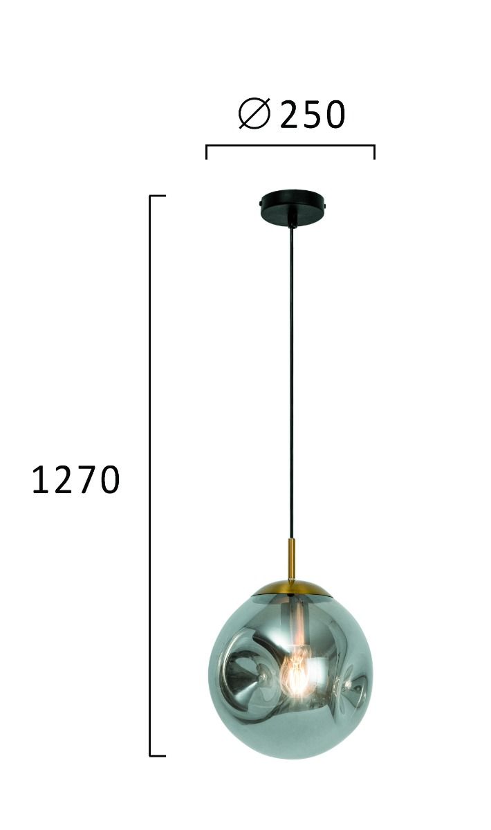 Φωτιστικό Κρεμαστό Ø25 εκ. 1xE27 Γυαλί Φυμέ-Ανάρτηση Μαύρο-Χρυσό Viokef Oscar 4253601