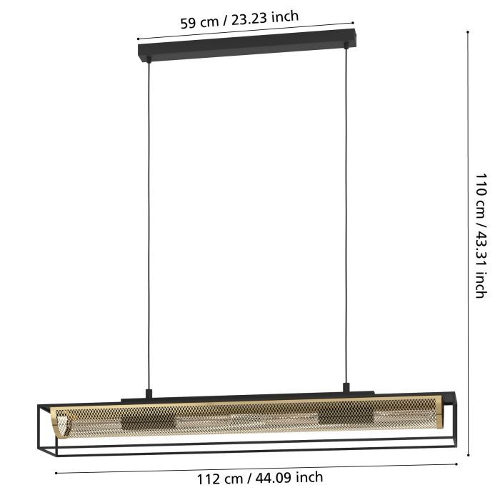 Φωτιστικό Κρεμαστό Τετράφωτο 4xE27 L11120xH1500mm Μέταλλο Black-Brass Eglo Nohaeles 43788