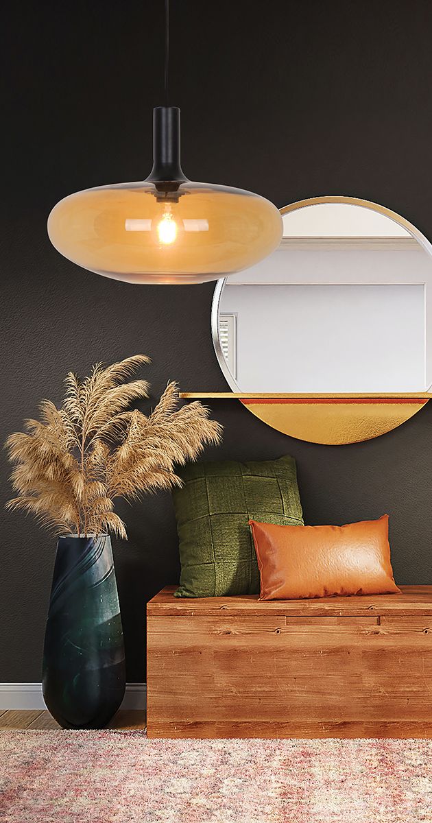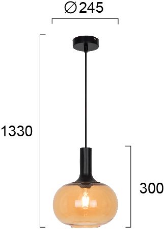 Φωτιστικό Κρεμαστό 1xE27 Ø245x300xH1330mm Γυαλί Μελί-Ανάρτηση Μαύρη Viokef Convex 4278001