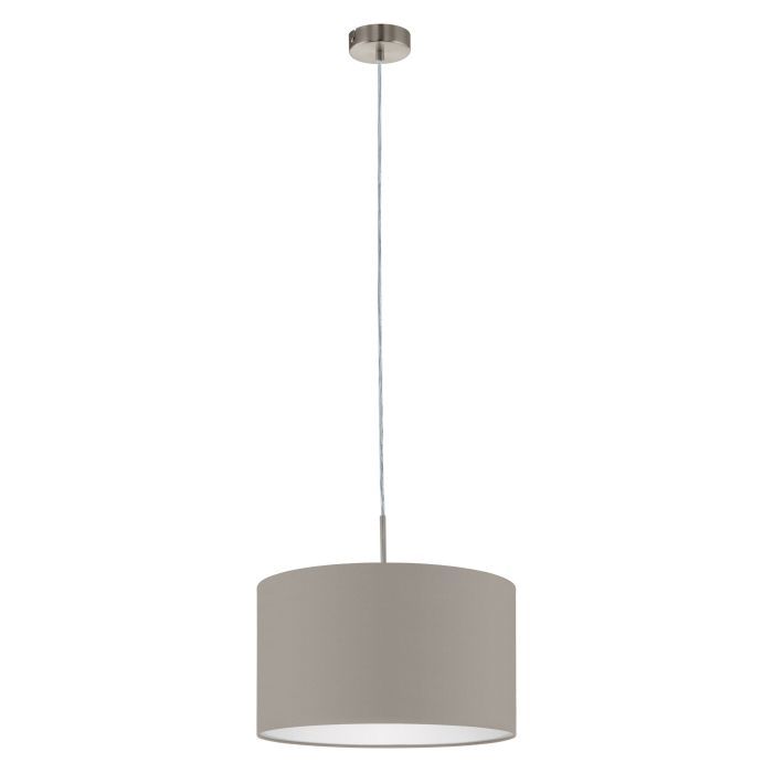 Φωτιστικό Κρεμαστό 1xE27 Ø380xH1100mm Νίκελ Ματ- Ύφασμα Taupe Eglο Pasteri 31572