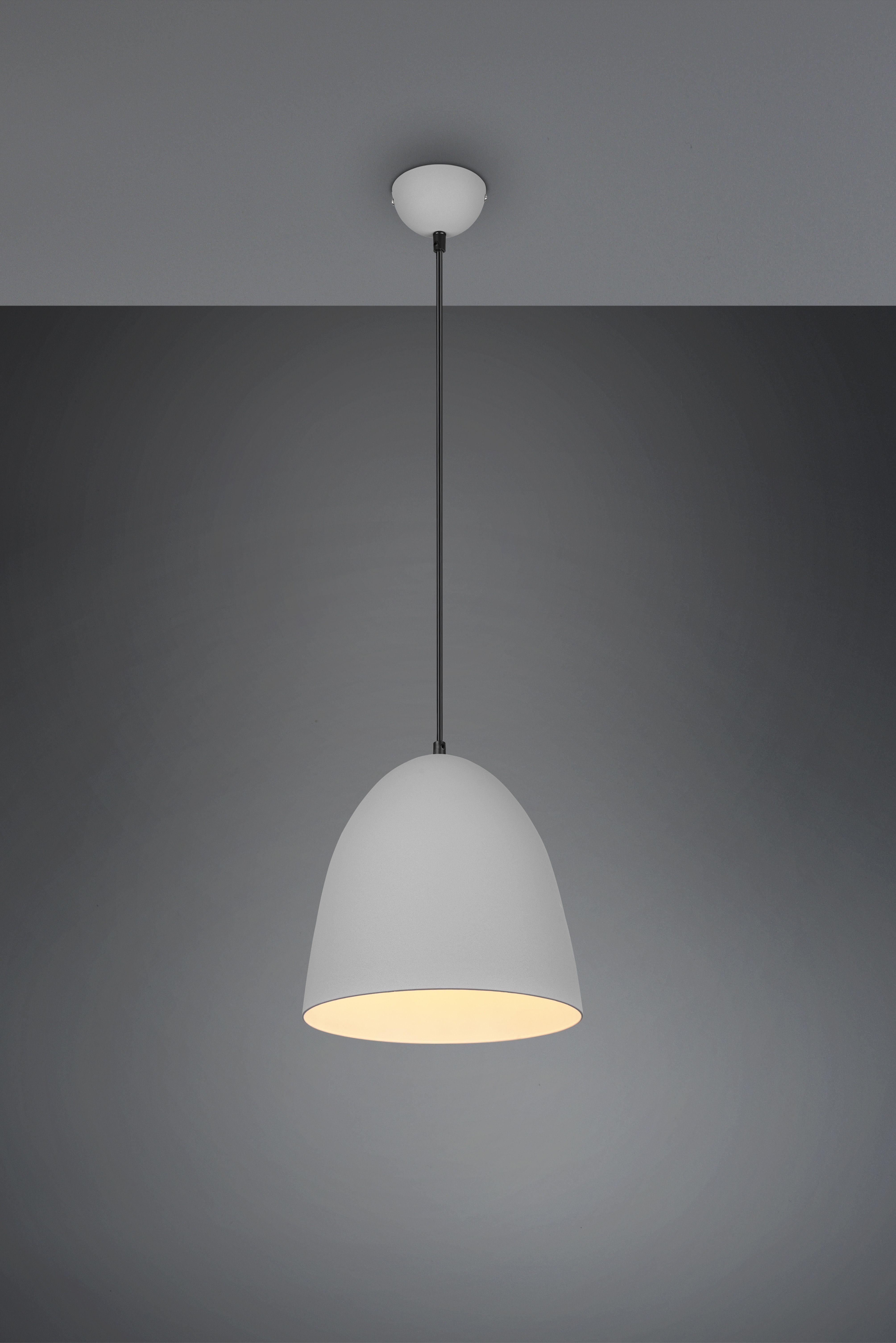 Μονόφωτο κρεμαστό φωτιστικό καμπάνα από την εταιρεία Trio Lighting σε γκρι χρώμα, με υποδοχή για έναν λαμπτήρα και ντουί E27. Είναι κατασκευασμένο από μέταλλο, ένα υλικό δημοφιλή στα κρεμαστά φωτιστικά οροφής, καθώς πέρα από τη μοντέρνα νότα που προσφέρει, είναι ιδιαίτερα ανθεκτικό στον χρόνο. Καθαρίζεται εύκολα με ένα πανί.