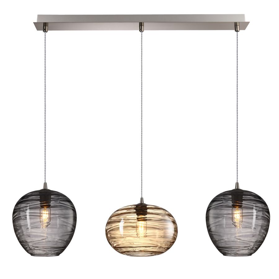 Φωτιστικό Κρεμαστό 90xΗ120cm Τρίφωτη Ράγα 3xE27 Νίκελ-Χειροποίητα Γυαλί Φιμέ-Μελί Sun Light LINEA-3S-GA