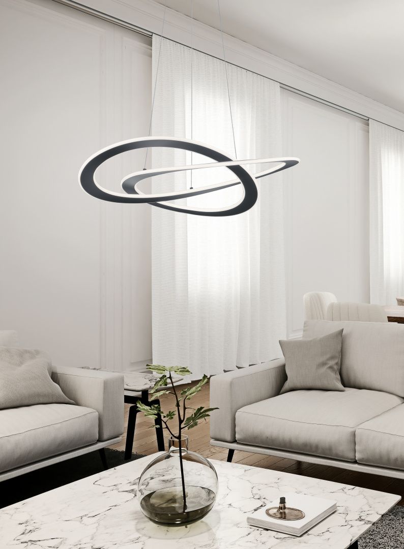 Kρεμαστό φωτιστικό με ενσωματωμένο LED από την εταιρεία Trio Lighting σε γκρι χρώμα. Είναι κατασκευασμένο από μέταλλο, ένα υλικό δημοφιλή στα κρεμαστά φωτιστικά οροφής, καθώς πέρα από τη μοντέρνα νότα που προσφέρει, είναι ιδιαίτερα ανθεκτικό στον χρόνο. Καθαρίζεται εύκολα με ένα πανί. Τέλος, το LED εκπέμπει θερμό λευκό φως, το οποίο αποδίδεται στην κλίμακα Kelvin με τιμές από 2400Κ έως 3500Κ. Αυτοί οι τόνοι του λευκού είναι πιο κίτρινοι σε σχέση με το φυσικό φώς.