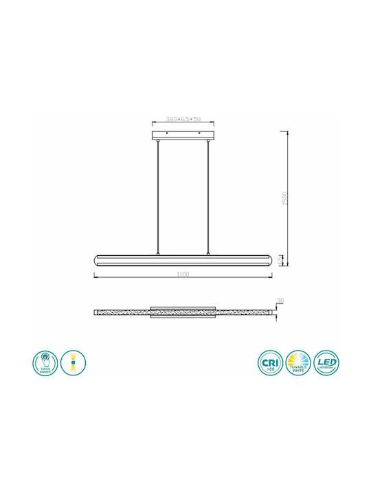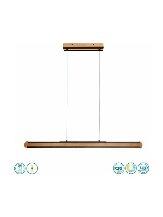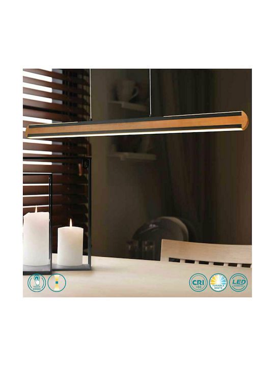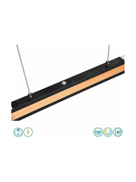Φωτιστικό Κρεμαστό L110x6,5xH150cm Led SMD 42w 3200lm 2700-6000K Ξύλο-Μέταλλο Μαύρο Trio Deacon 326610232
