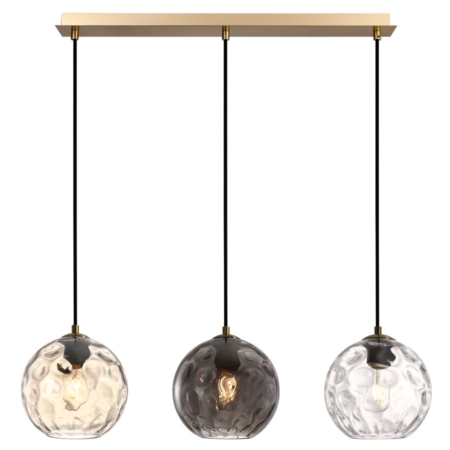 Φωτιστικό Κρεμαστό L65xH120cm Τρίφωτο 3xE27Χειροποίητο Γυαλί-Μέταλλο Οξυντέ Sun Light PARLIA-3S-BR