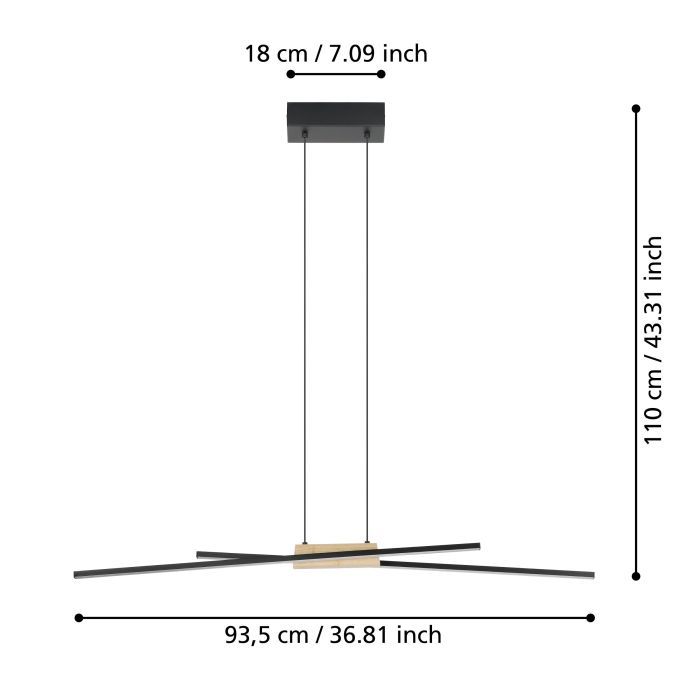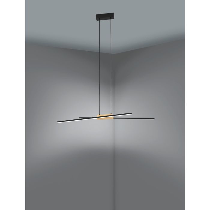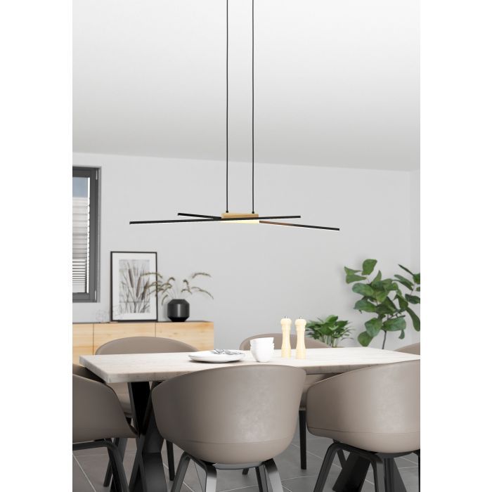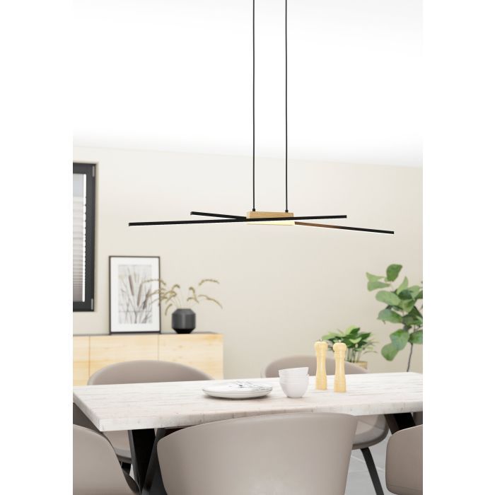 Φωτιστικό Κρεμαστό L935xxH1100mm Led 2x13w 3120lm Warm White Μαύρο-Ξύλο Eglo Panagria 900489