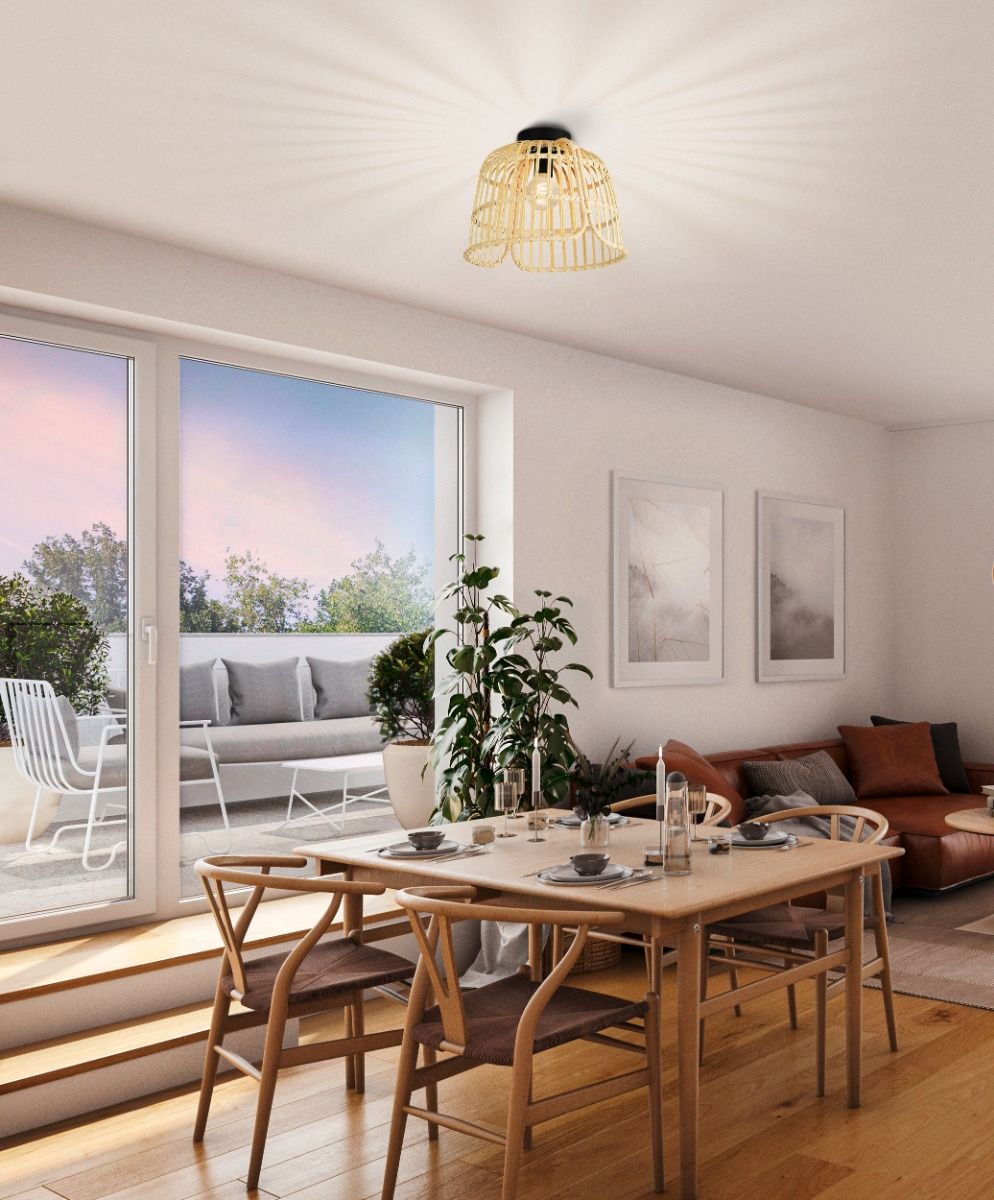 Φωτιστικό Οροφής Ø375xH205mm 1xE27 Ξύλο--Μπαμπού-Μαύρο Eglo Glyneath 43872