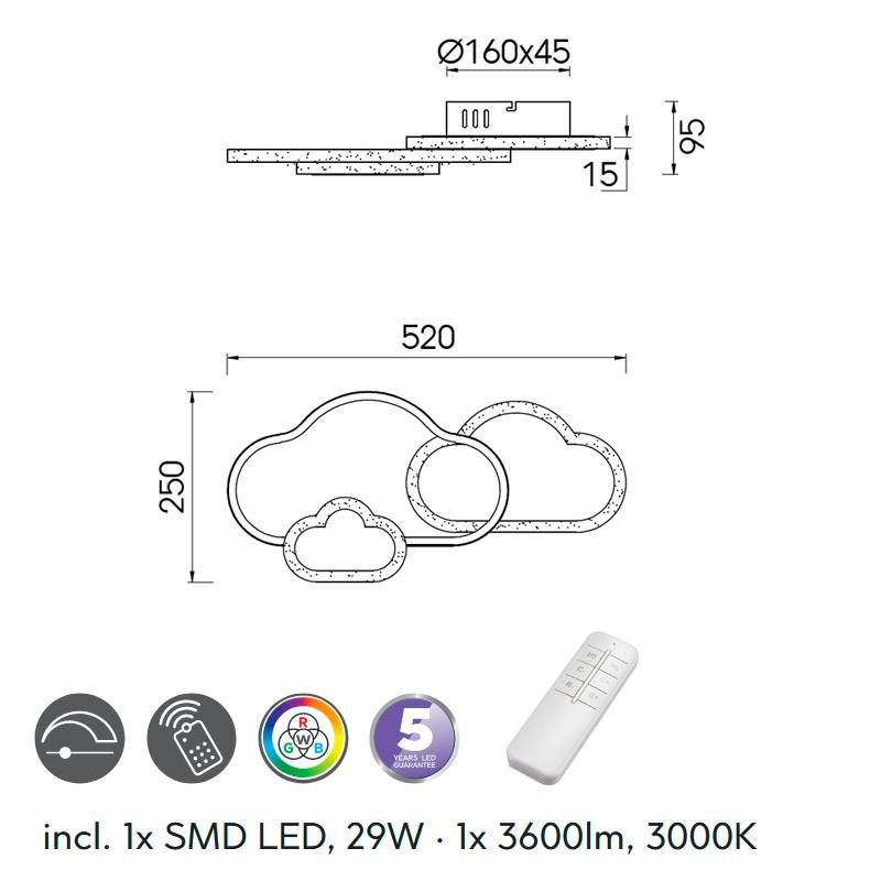 Φωτιστικό Οροφής-Πλαφονιέρα H9x52x25cm 29w 3600lm 3000K Μέταλλο Λευκό Ματ Trio Cloudy R62263131