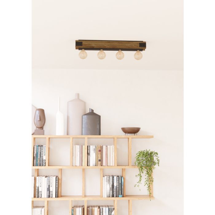 Φωτιστικό Οροφής Ράγα Τετράφωτη L760xH100mm 4xE27 Μέταλλο Μαύρο-Ξύλο Eglo Layham 43466