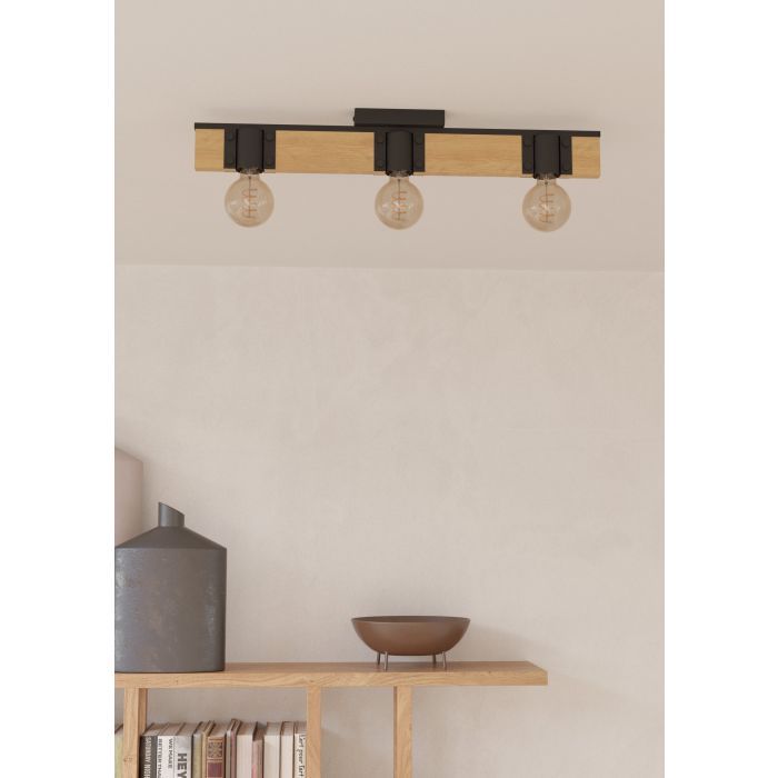 Φωτιστικό Οροφής Τρίφωτο Ράγα L655xH45mm 3xE27 Μέταλλο-Ξύλο Eglo Bailrigg 43901