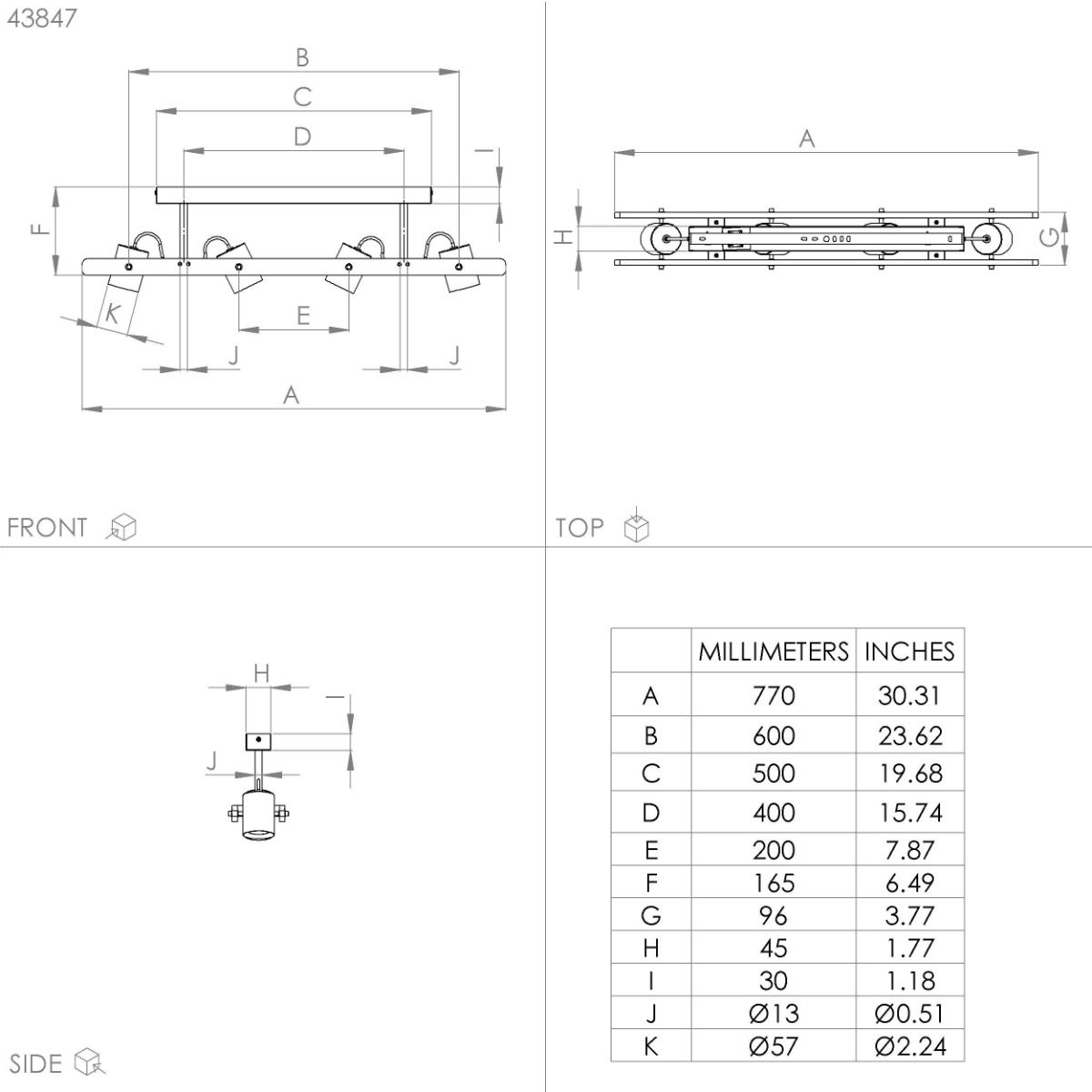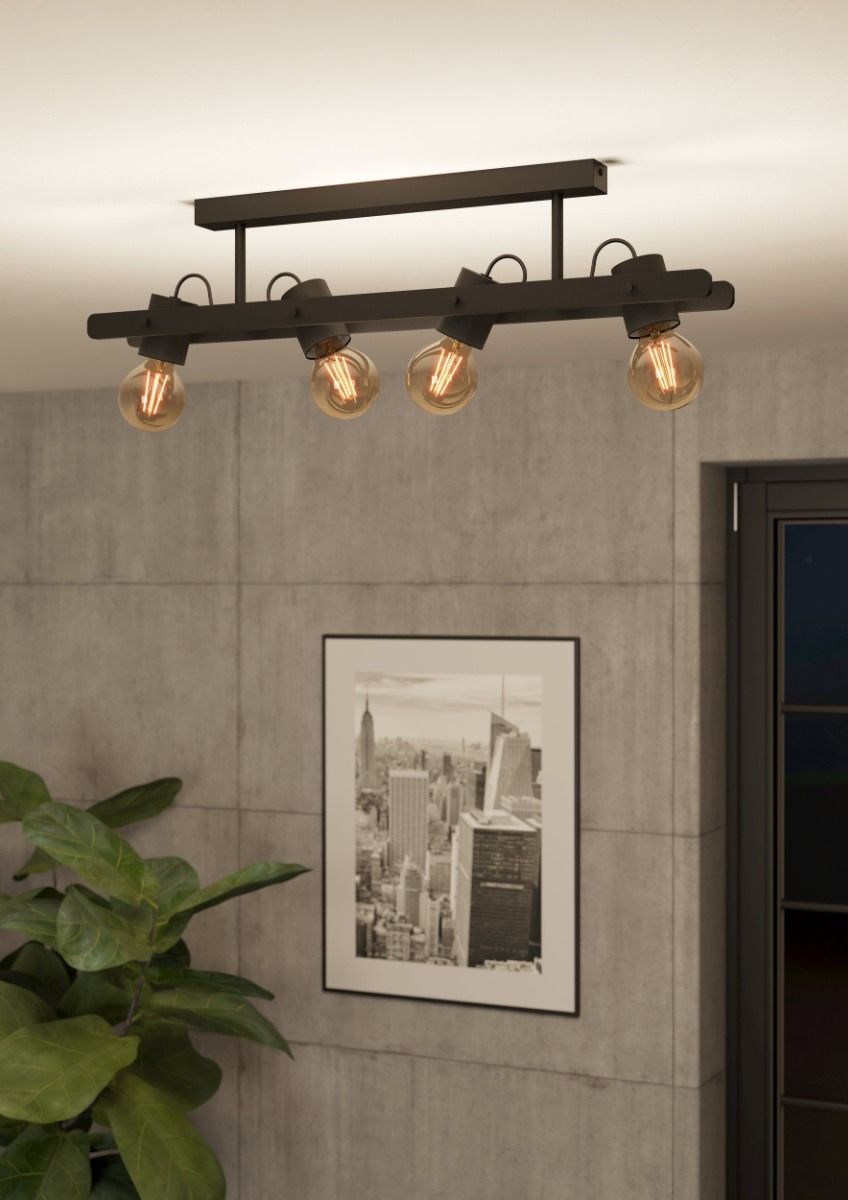 Φωτιστικό Οροφής L77xH16,5cm Μαύρη Ράγα Τετράφωτη 4x E27 Eglo Plimsoll 43847