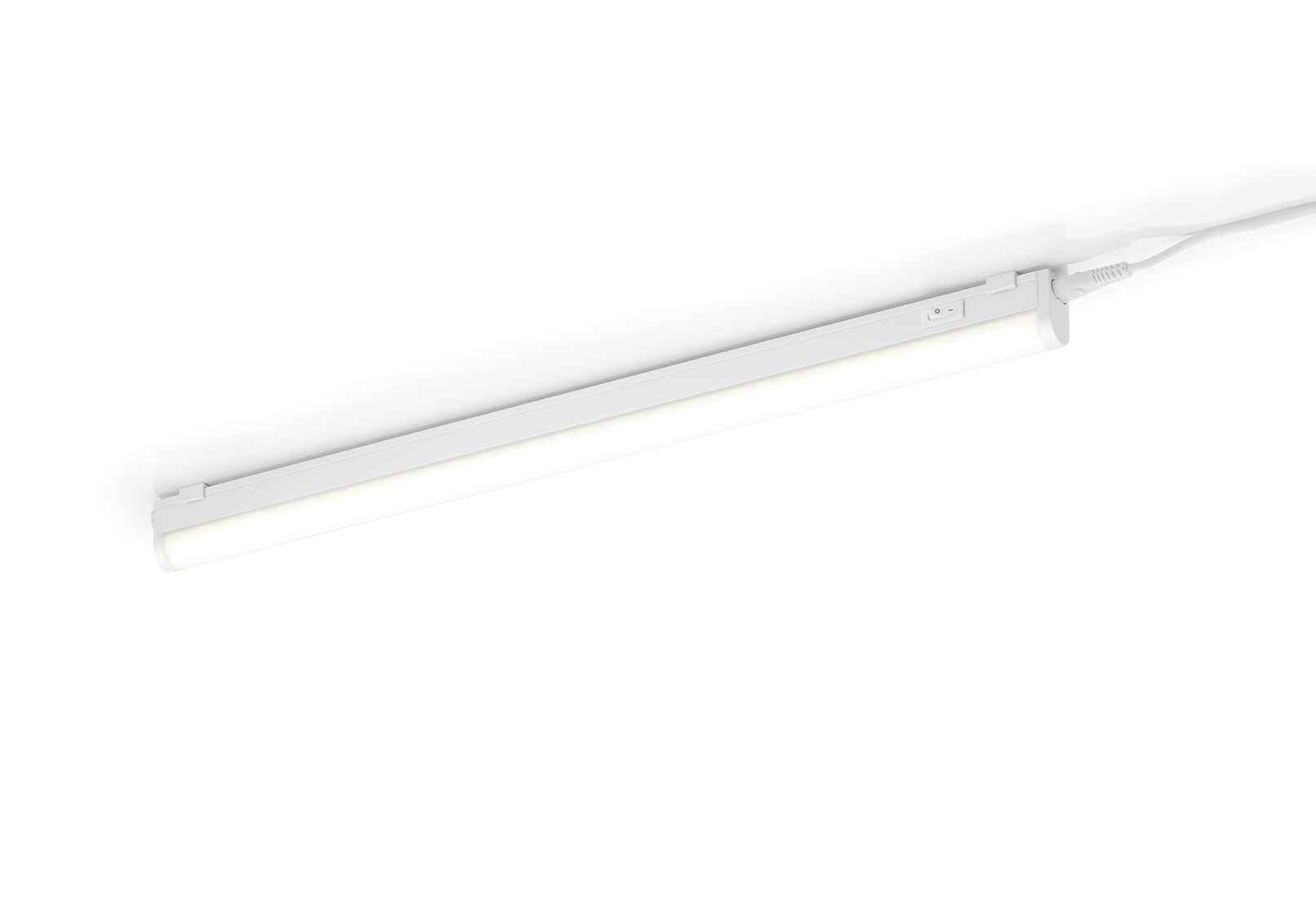 The 51cm wide RAMON LED under-cabinet light is designed for mounting on kitchen wall units or similar, where it provides ideal lighting for the work area. It is illuminated by energy-efficient LEDs that produce a pleasant warm white light. The light is switched on and off using the toggle switch on the white housing. Thanks to the classic and simple white colour scheme, the light can be used in all conceivable areas. In addition, the luminaire features modern LED technology, which is characterised by high light quality and energy efficiency. Compared to conventional halogen lamps, up to 80% of energy costs can be saved. In addition, LED light sources have a long service life, produce less heat and protect the environment.