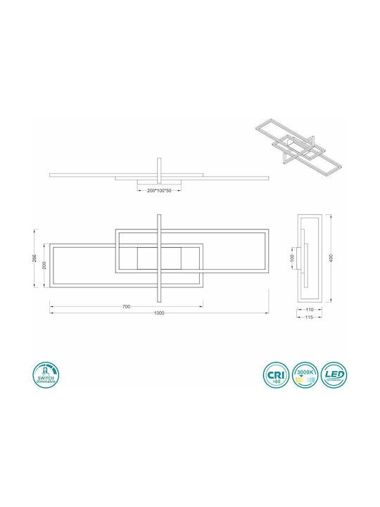 Φωτιστικό Πλαφονιέρα Οροφής L100x40xH11,5cm Smd Led 34w 3900lm 3000K Νίκελ Ματ Trio Salinas 620310307